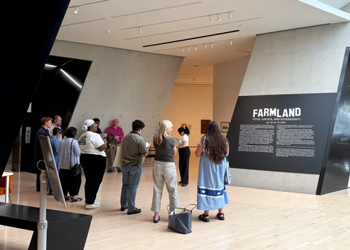 The project began with elders who have ties to the state's farming history and participating artists visiting the Farmland exhibition in East Lansing to kick off this summer pop-up residency.